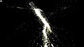 A short, realtime, simulation depicting gravitational interaction between dark matter particles to form a galaxy like structure.